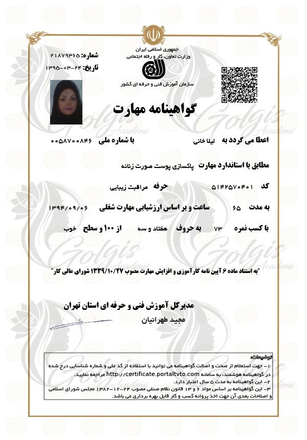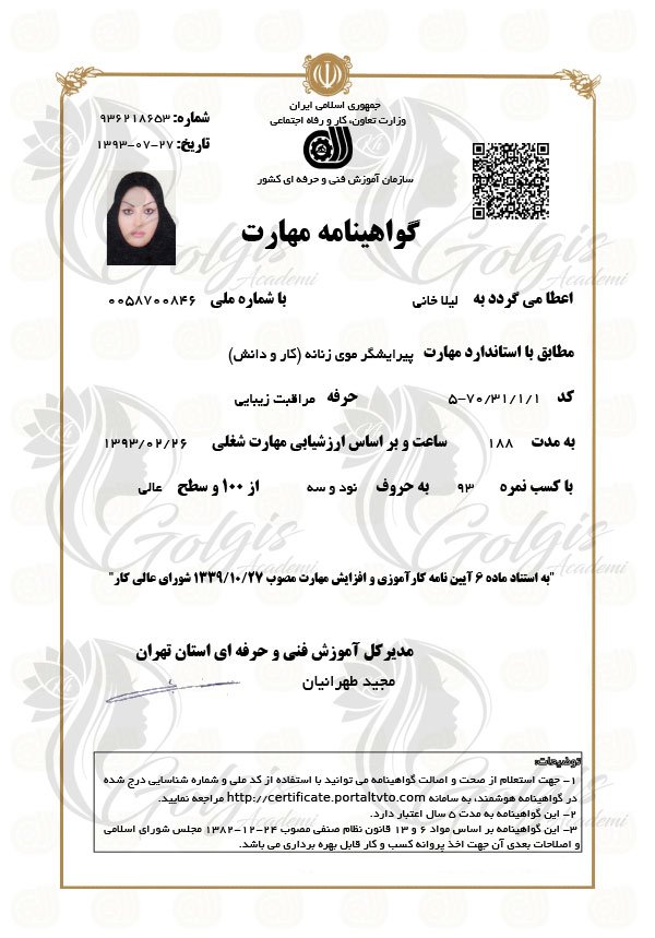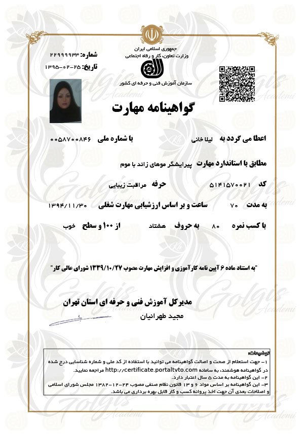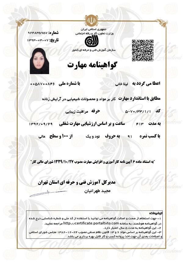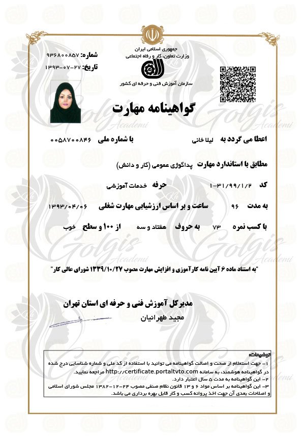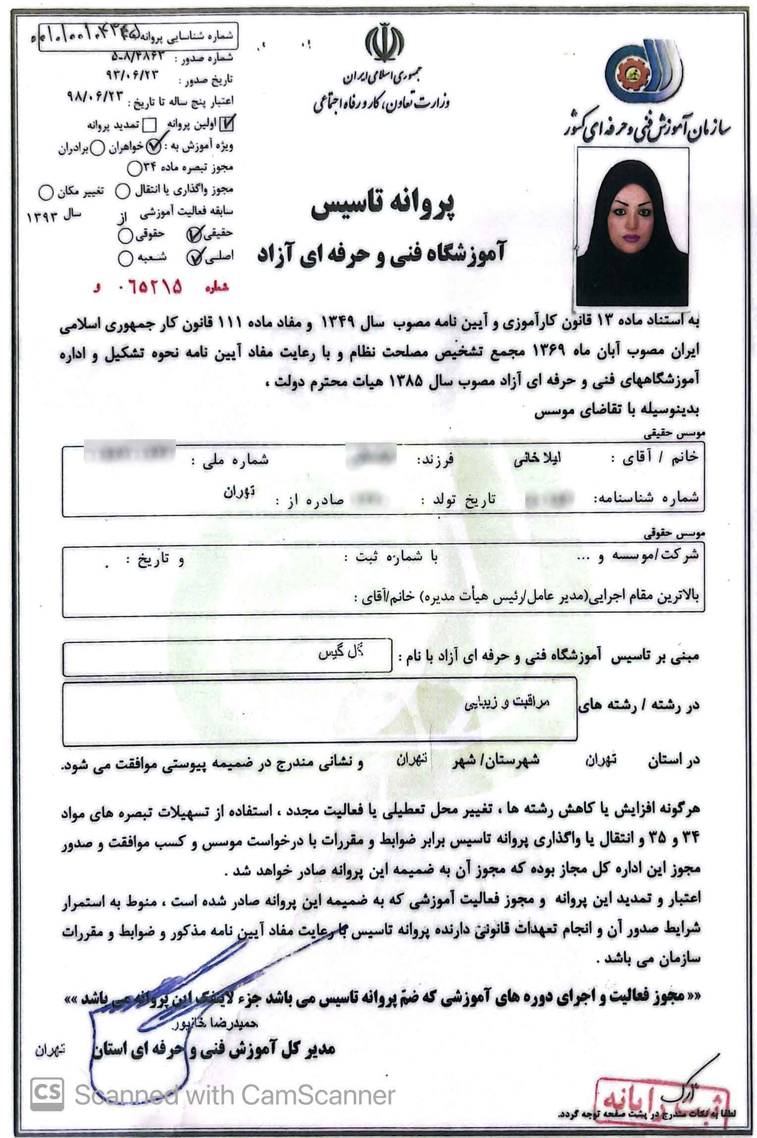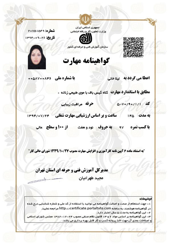 برای مشاهده مدارک و گواهینامه های آموزشگاه آرایشگری گل گیس به تصاویر زیر مراجعه کنید: